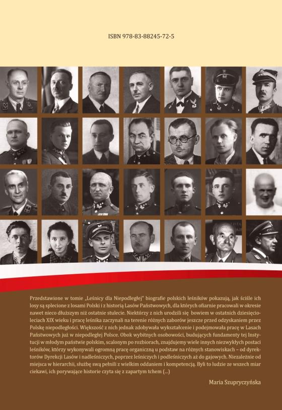 Okolicznością, która przyświecała pracy nad prezentowaną książką jest Stulecie Odzyskania Niepodległości przez Polskę. Pisze o tym w Słowie wstępnym profesor Maria Szupryczyńska, autorka wspomnienia o swoim ojcu, leśniczym Władysławie Urbańskim: „Przedstawione w tomie Leśnicy dla Niepodległej biografie polskich leśników pokazują, jak ściśle ich losy są splecione z losami Polski i historią Lasów Państwowych, dla których ofiarnie pracowali w okresie nawet nieco dłuższym niż ostatnie stulecie. Niektórzy z nich urodzili się bowiem w ostatnich dziesięcioleciach XIX wieku i pracę leśnika zaczynali na terenie różnych zaborów jeszcze przed odzyskaniem przez Polskę niepodległości. Większość z nich jednak zdobywała wykształcenie i podejmowała pracę w Lasach Państwowych już w niepodległej Polsce. Obok wybitnych osobowości, budujących fundamenty tej instytucji w młodym państwie polskim, scalonym po rozbiorach, znajdujemy wiele innych niezwykłych postaci leśników, którzy wykonywali ogromną pracę organiczną u podstaw na różnych stanowiskach – od dyrektorów Dyrekcji Lasów i nadleśniczych, poprzez leśniczych i podleśniczych aż do gajowych. Niezależnie od miejsca w hierarchii, służbę swą pełnili z wielkim oddaniem i kompetencją. Byli to ludzie ze wszech miar ciekawi, ich porywające historie czyta się z zapartym tchem.”