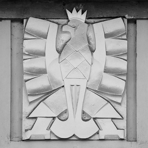 Warto zwrócić uwagę na jeszcze jeden element ściany frontowej gmachu Dyrekcji. Nad drzwiami wejściowymi do budynku umieszczona jest płaskorzeźba orła – godła Państwa Polskiego. Orzeł był w tym miejscu już w 1930 r., jednak po agresji Niemiec na Polskę w 1939 r. został usunięty i zniszczony.
